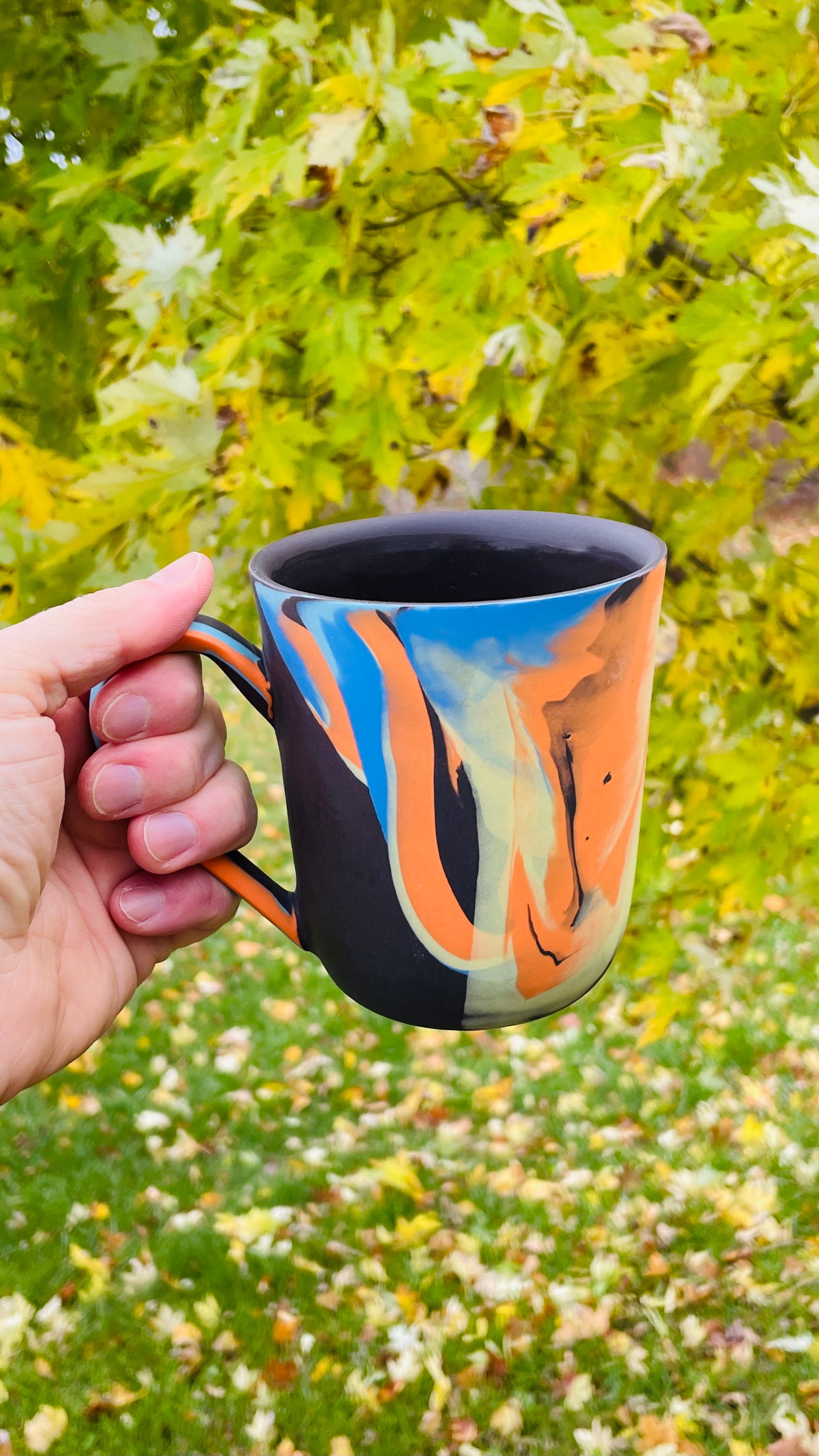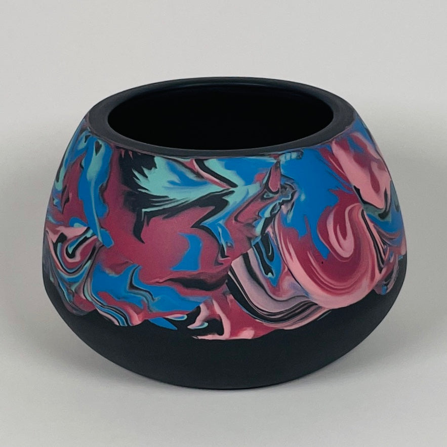 Objects that inspire comfort, both physically and visually, are the most memorable to me so I strive to include these qualities in my work for others. Any new form is tested and tweaked until it accurately performs the task that I designed it for. Bold colours or crystalline glazes are poured and painted to create a surface design that is unique to each piece. Finally, all unglazed surfaces are hand sanded until they are soft and smooth to the touch.
